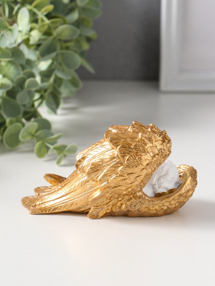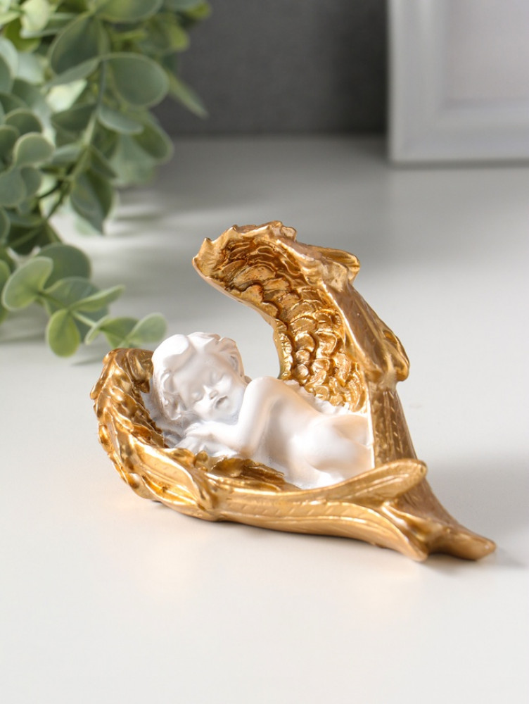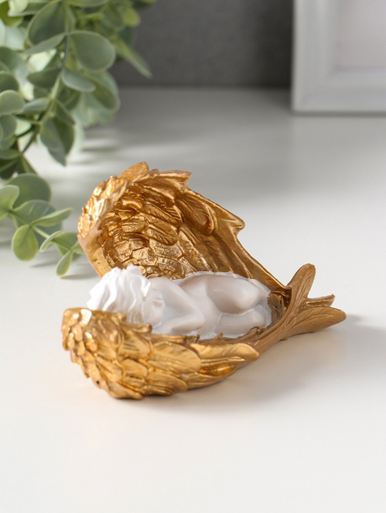 Фигурка «Спящий белоснежный ангел с золотыми крыльями»