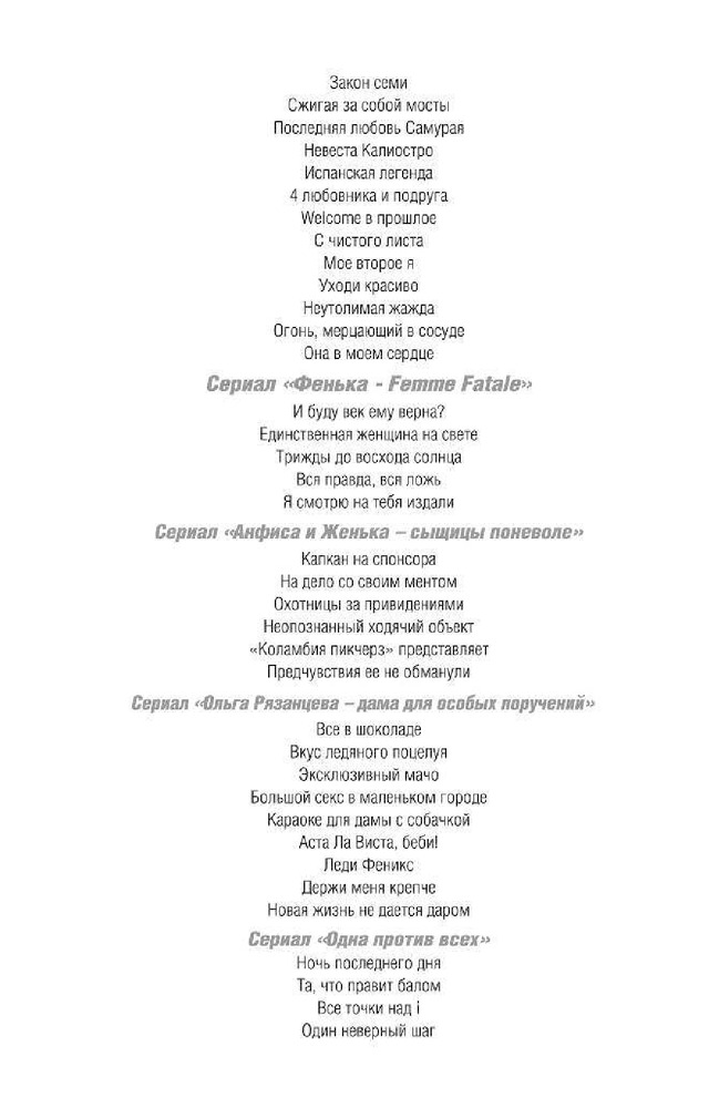 В данный момент этот товар отсутствует в продаже. Возможно, у нас найдется аналогичный или похожий товар здесь. Серия: Авантюрный детектив Т.Поляковой (обложка) Хорошенькое дельце — к вам приходит человек и просит отомстить за него после того, как его убьют. К Ольге Рязанцевой именно с такой просьбой обратилась молодая женщина. Можно было бы отмахнуться, но женщину и вправду застрелили, а ее кровью написали дату следующего преступления, которое и совершилось точно в срок. Убийца еще и ухитряется передать привет лично Ольге. Впрочем, подоплека всей этой игры ей ясна. Важнее ответить на вопрос — кто же она сама: содержанка полумафиозного чиновника или человек с честью и достоинством? Ответить надо быстро, ибо к виску Ольги приставлен пистолет и время уже пошло… |