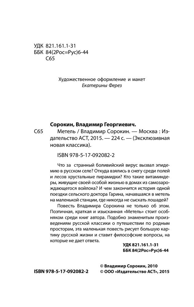 Серия: Эксклюзивная новая классика Что за странный боливийский вирус вызвал эпидемию в русском селе? Откуда взялись в снегу среди полей и лесов хрустальные пирамидки? Кто такие витаминдеры, живущие своей, особой жизнью в домах из самозарождающегося войлока? И чем закончится история одной поездки сельского доктора Гарина, начавшаяся в метель на маленькой станции, где никогда не сыскать лошадей? |