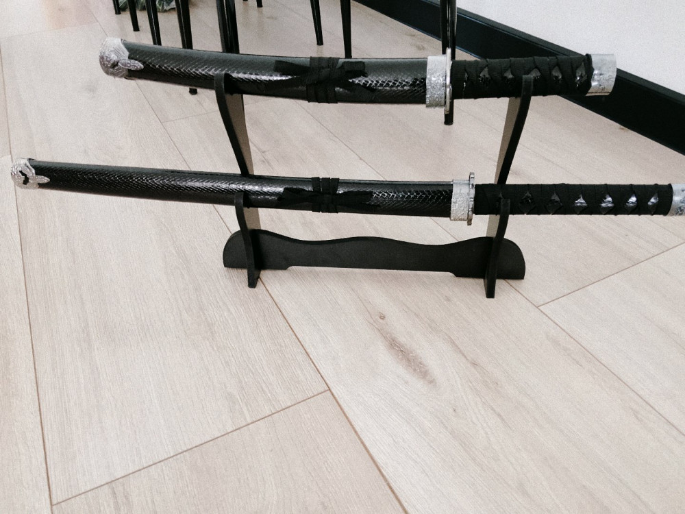 Катаны сувенирные 2 в 1 на подставке, черные ножны, под змею-25% +96 внешний вид соответствие ожиданиям пластик дешевый