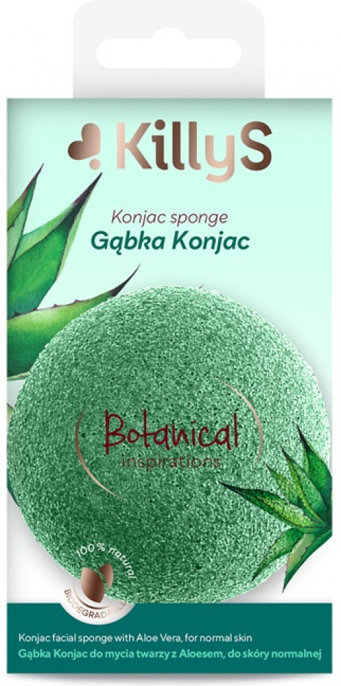 Killys Спонж для умывания лица с алоэ «Konjack sponge Botanical Inspirations»