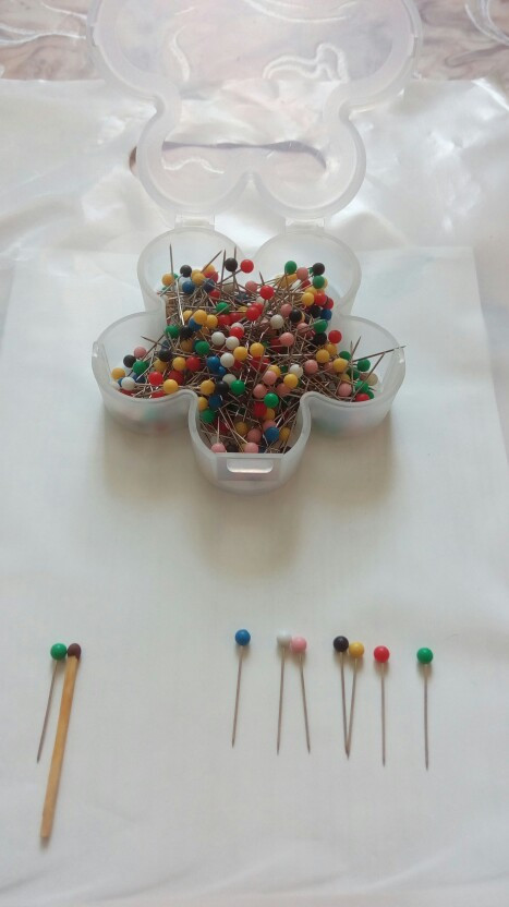 Булавки не понравились. То что они короткие не проблема, иногда в работе и такие нужны. Проблема в том, что они не все гладкие, шероховатые и много тупых, плюс игла немного толще стандартной. такие иглы будут портить ткань.