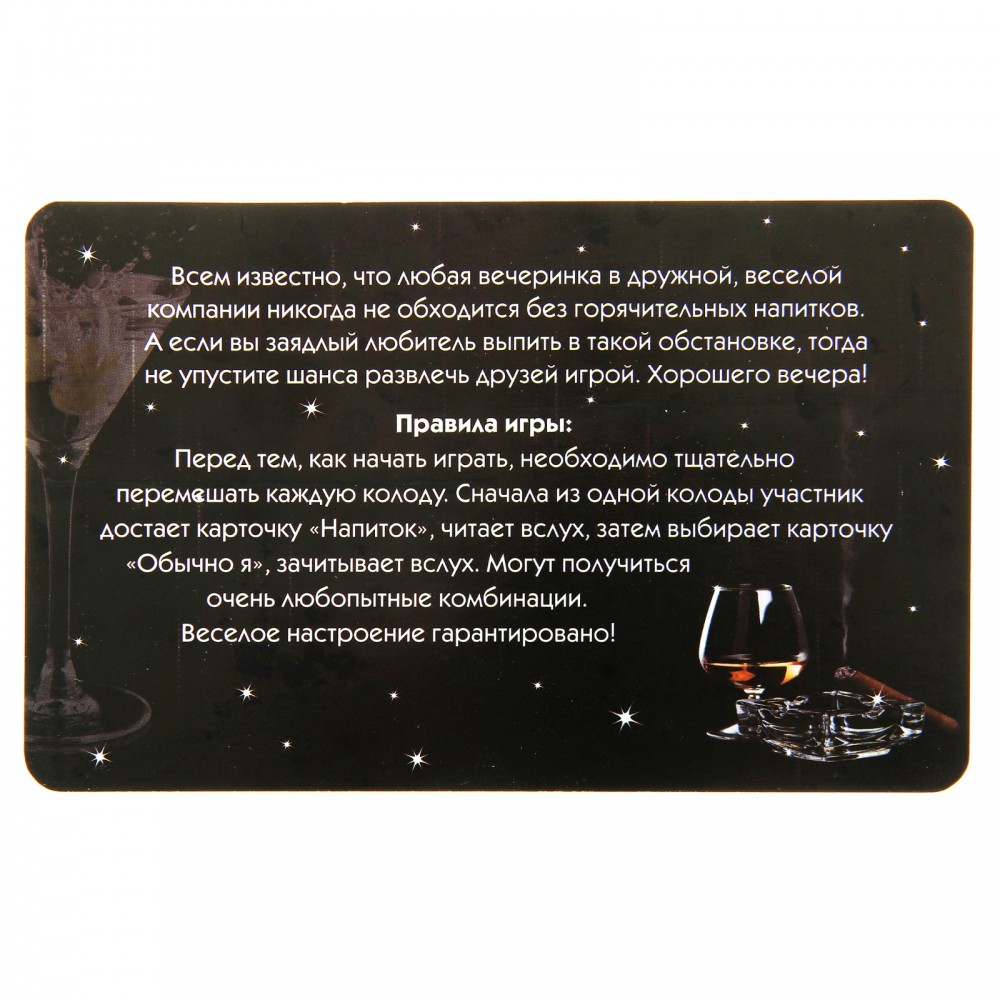 В данный момент этот товар отсутствует в продаже. Возможно, у нас найдется аналогичный или похожий товар здесь. Карточная игра вопрос-ответ — настоящая находка для тех, кто ищет нестандартные решения для своей вечеринки и желает удивить гостей. Неожиданные, а порой и пикантные комбинации вопросов и ответов разбавят Вашу компанию дружным хохотом.