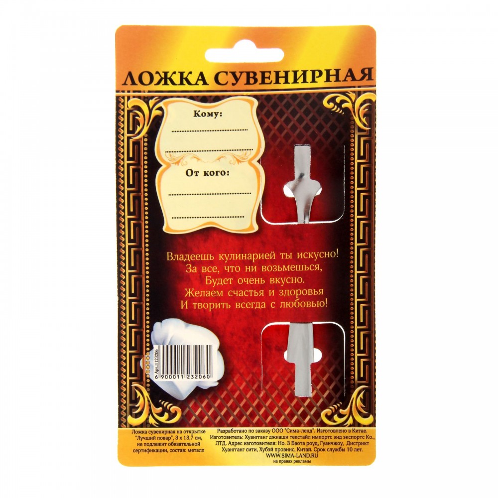 Отзывы «Ложка сувенирная на открытке «Лучший повар»»
