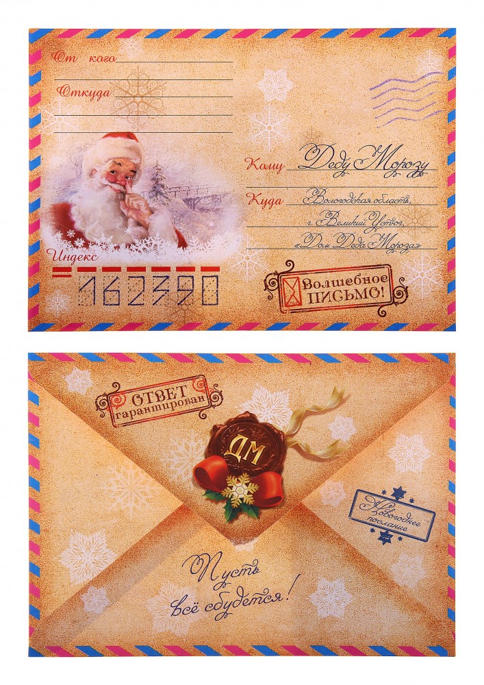 Письмо новогоднее с конвертом «От девочки»В данный момент этот товар отсутствует в продаже. Возможно, у нас найдется аналогичный или похожий товар здесь. У каждого есть заветное желание. Как узнать Деду Морозу о том, что же вы мечтаете получить в подарок. У нас есть решение! Письмо новогоднее с конвертом «Дедушке Морозу» в эксклюзивном дизайне донесёт ваше послание, и оно непременно исполнится. Настоящий ответ от Деда Мороза можно получить только в случае, если письмо будет отправлено по всем требованиям волшебной почты (в конверте и с почтовыми марками) по таким адресам: |