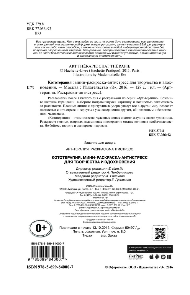 💳 Оплатить за товар можно при получении 🇰🇿 Есть бесплатная доставка по Казахстану 🎁 Копите бонусы с каждой покупки Серия: Арт-терапия. Раскраски-антистресс Расслабьтесь после тяжелого дня с раскрасками из серии |