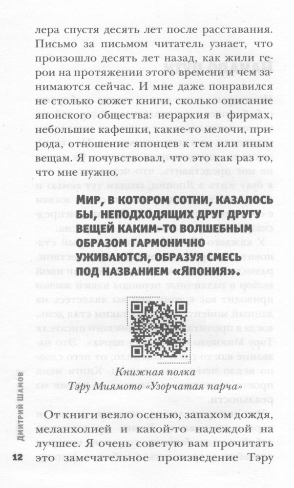 Не знаю, будет ли интересна эта книга людям не посвященным в творчество Дмитрия, но мне она показалась не просто интересной а поистине захватывающей. Я всегда интересовался другими странами, тем чего никогда не видел. Япония в этом плане фигурировала на первых местах. Именно поэтому я заинтересовался сначала каналом Дмитрия на YouTube, затем и книгой. О покупке ни разу не пожалел. Советую посмотреть пару его видеороликов перед покупкой книги.