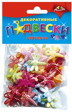 АппликА Подвески декоративные «Стрекозы»В данный момент этот товар отсутствует в продаже. Возможно, у нас найдется аналогичный или похожий товар здесь. Красивые яркие подвески из пластика в виде звездочек. Подвески можно использовать в изготовлении детской бижутерии, как декоративный элемент для украшения сумочек, детской одежды, кукол и игрушек. |