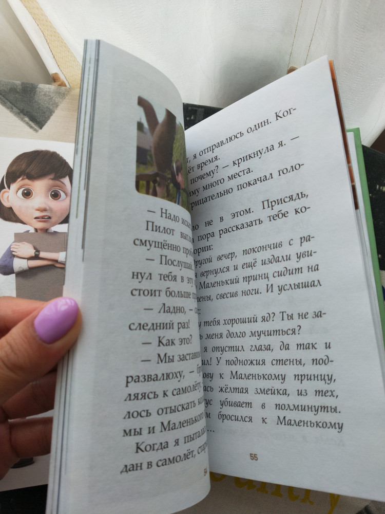 Книга по мультфильму Маленький Принц. Написана очень легко и интересно! Формат небольшой. Картинки из мультфильма. С дочкой (3,5 года) прочитали на одном дыхании! Не пожалели, что купили!