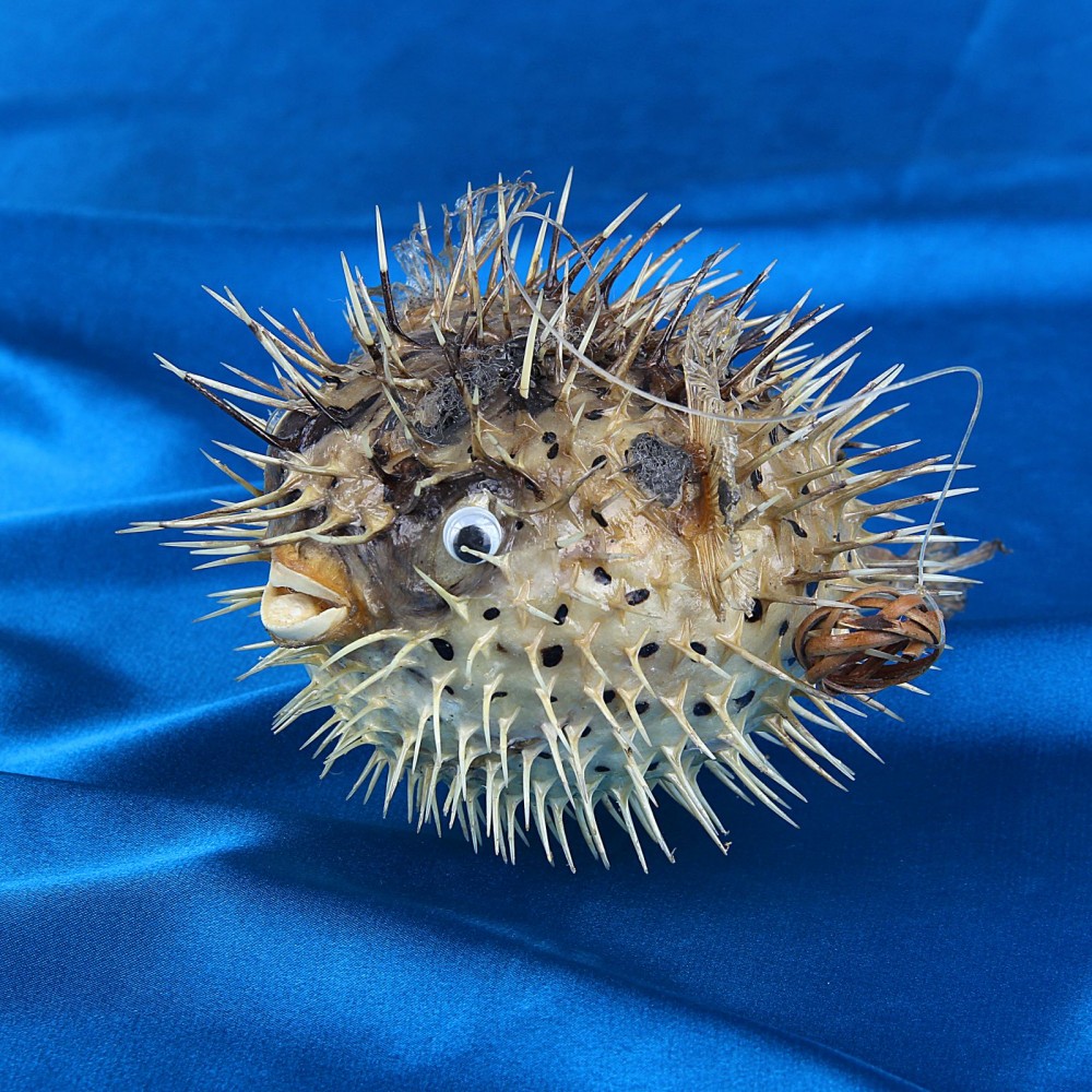 Когда общалась с оператором и уточняла насчёт рыбы, настоящая она или нет, то она мне сказала что нет. Я взяла её с тем учётом, что если что верну. Но рыба оказалась настоящей, симпатичной, да ещё и в два раза больше, чем я её себе представляла. Иглы очень острые. Имеется на леске держалка в виде колечка. Набита она синтепоном. Ставлю 5. Советую!