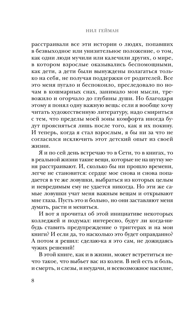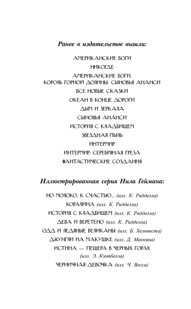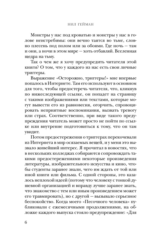 Философ, сказочник, литературный художник Нил Гейман погружает нас в свежесозданную фантастическую действительность. Отдергивая завесу мнимой реальности, писатель обнажает самые темные уголки человеческой души, препарируя страхи и сомнения, надежды и ожидания.