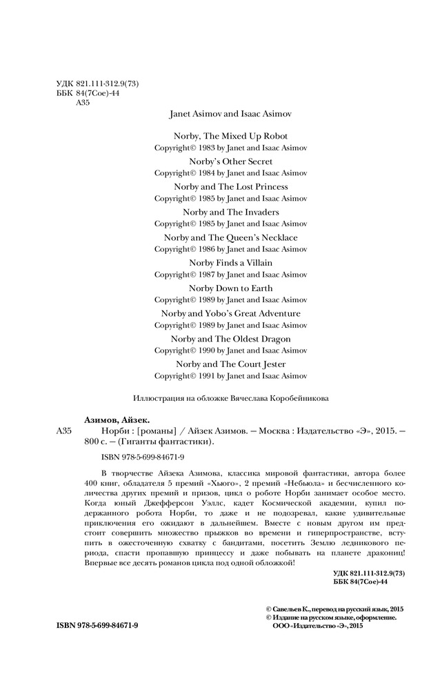 НорбиВ данный момент этот товар отсутствует в продаже. Возможно, у нас найдется аналогичный или похожий товар здесь. Серия: Гиганты фантастики В творчестве Айзека Азимова, классика мировой фантастики, автора более 400 книг, обладателя 5 премий «Хьюго», 2 премий «Небьюла» и бесчисленного количества других премий и призов, цикл о роботе «Норби» занимает особое место. |