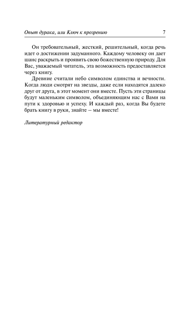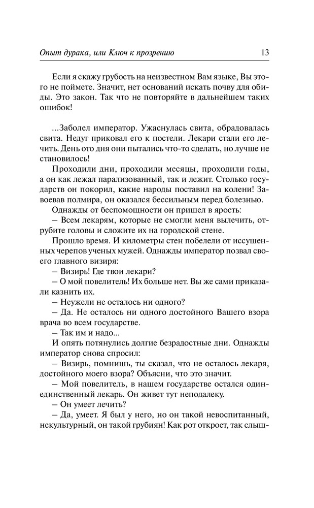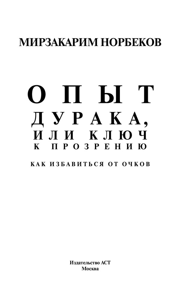 Опыт дурака, или Ключ к прозрению. Как избавиться от очковМирзакарим Санакулович Норбеков В данный момент этот товар отсутствует в продаже. Возможно, у нас найдется аналогичный или похожий товар здесь. Серия: Классика жанра психологии Вы держите в руках необычную книгу. Это не просто пособие по ускоренному обучению восстановления зрения, не просто трактат по философии для хронического |