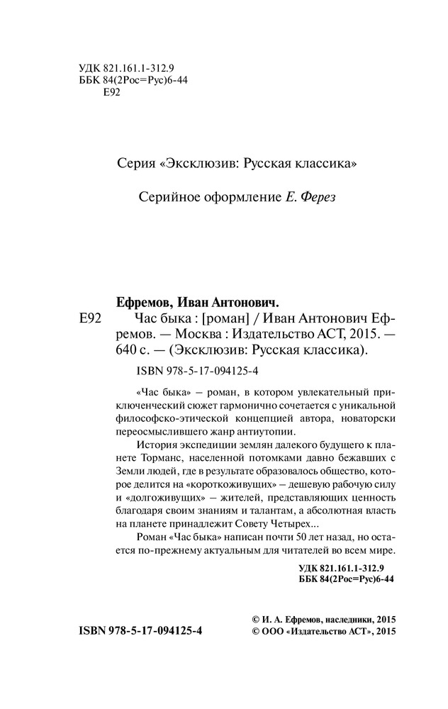 Серия: Эксклюзив: Русская классика «Час быка» — роман, в котором увлекательный приключенческий сюжет гармонично сочетается с уникальной |