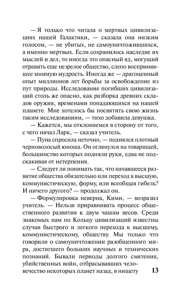 Автор - Иван Антонович (при рождении - Антипович) Ефремов (1908-72гг.), доктор биологических наук, советский палеонтолог, писатель-фантаст и социальный мыслитель, лауреат сталинской премии II степени (1952г., за монографию «Тафономия и геологическая летопись»). Жанр - антиутопия. Идею романа автор начал обдумывать с начала 60х годов, написал за 3 года к 1968г., впервые опубликовал в течение 1968-69г.в журналах. Содержание книги очень похоже на описание антропологического перехода, который историком А.И.Фурсовым (со ссылкой на материалы закрытой конференции в городе Санта-Фе 2018г.) рассматривается как вполне реальный сценарий развития современного мира с разделением жителей на 2 отдельных вида (долгоживущих и короткоживущих). Отдельные неточности и странности в книге: -речь идёт о наличии разумной жизни на множестве планет, образующих «Великое Кольцо». Между тем науке известен «парадокс Ферми» суть которого заключается в том, что нет никаких признаков разумной жизни в космосе кроме земной; -учитывая, что на звездолете «Темное Пламя» было всего 13 астронавтов, весьма сомнительно, что 3 звездолета, построеннных за 2 тысячелетия до него, могли уместить достаточное количество человек для сохранения генетического разнообразия и выживания вида на новой планете. В сети встретил информацию, что для выживания вида у позвоночных такое количество может быть 500-5000 особей; -ось вращения планеты Торманс меняла свое направление так, что одно полушарие всегда располагалась по направлению движения планеты по орбите. По моим представлениям свободно вращающееся тело должно сохранять направление оси вращения; -упоминается способность человека волевым усилием останавливать биение своего сердца. Насколько мне известно у человека нет такой возможности; -общество где основная часть населения (короткоживущие) умирает в 25 лет, по моему мнению, не может существовать длительное время, т.к. основная часть его потомства не выживет из-за не достижения зрелости к моменту смерти родителей (7-9 лет или менее); -упоминается скорочтение, которым владеют все земляне. Насколько мне известно, скорочтение связано в большинстве случаев с существенной потерей понимания текста; -девушка Сю-Те упоминает, что она «короткоживущая», что они не проводят детство в душных школах, однако ранее она упоминала, что история была для неё самым интересным предметом в школе; -как правило при описании положения дел на Земле и Тормансе автор использует характеристики, в которых мало конкретики. Читал книгу, т.к.она упоминалась А.А.Вассерманом и Д.Ю.Пучковым (Гоблин).
