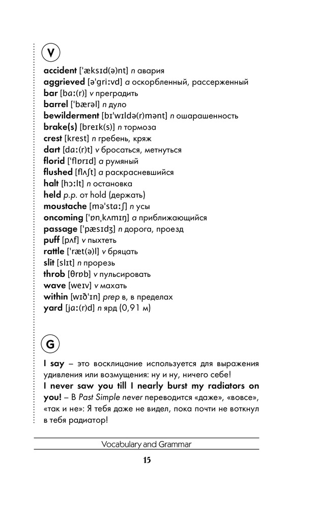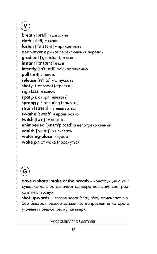 На каждом развороте вы найдете текст и краткий словарик с необходимыми словами и пояснениями.