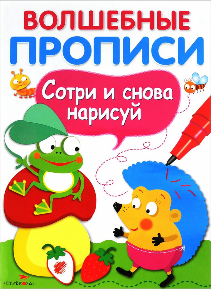 Серия: Волшебные прописи. Сотри и снова нарисуй Рисовать и раскрашивать в этой книжке - одно удовольствие! Берём яркие фломастеры и принимаемся за работу. А если получилось не очень аккуратно или захотелось раскрасить картинки по-другому - не беда! Рисовать и раскрашивать можно столько раз, сколько угодно: всё, что было нарисовано фломастерами, легко стирается влажной тряпочкой. Как здорово почувствовать себя волшебником! |
