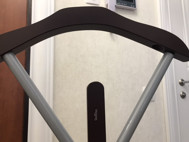 Удобная и практичная вещь для тех, у кого мужья носят костюмы. Но, если в семье маленький ребенок, то вещь не практична, так как ребенку нравится все с нее стягивать.