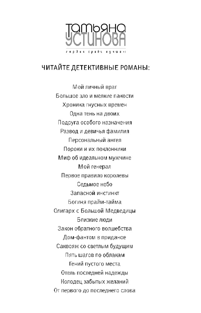 Очень нравится Устинова, многие ее книги захватывают, держат в напряжении до последней странички, очень рекомендую почитать тем, кому нравится сочетание детектива и романтики. Книгу "Мой генерал" несколько раз перечитывала в электронном варианте, заказала через FLIP kz, не пожалела, очень довольна.