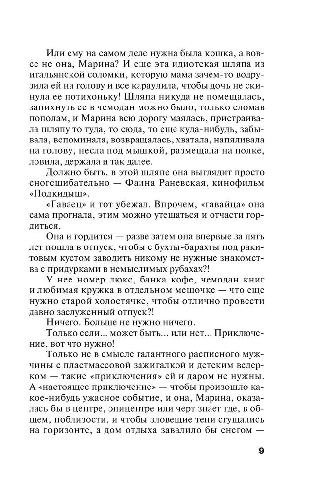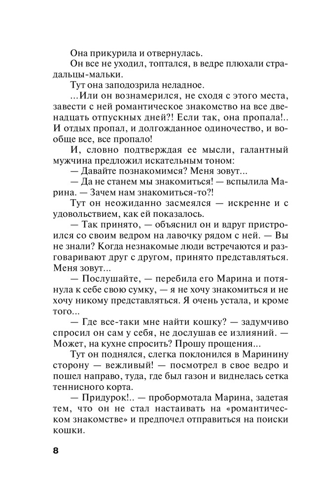 Мой генералВ данный момент этот товар отсутствует в продаже. Возможно, у нас найдется аналогичный или похожий товар здесь. Серия: Первая среди лучших-мини Молодая московская профессорша Марина приезжает на отдых в санаторий на Волге. Она мечтает о приключении, может, детективном, на худой конец — романтическом. И получает все в первый же день в одном флаконе. Ветер унес ее шляпу на пруд, и, вытаскивая ее, Марина увидела в воде утопленника. Милиция сочла это несчастным случаем. Марина уверена — это убийство. Она заметила одну странную деталь… Но вот с кем поделиться? Она рассказывает свою тайну Федору Тучкову, которого поначалу сочла кретином, а уже на следующий день он стал ее напарником. Назревает курортный роман, чему она изо всех профессорских сил сопротивляется. Но тут гибнет еще один отдыхающий, который что-то знал об утопленнике. Марине ничего не остается, как опять довериться Тучкову, тем более что выяснилось: он — профессионал… |