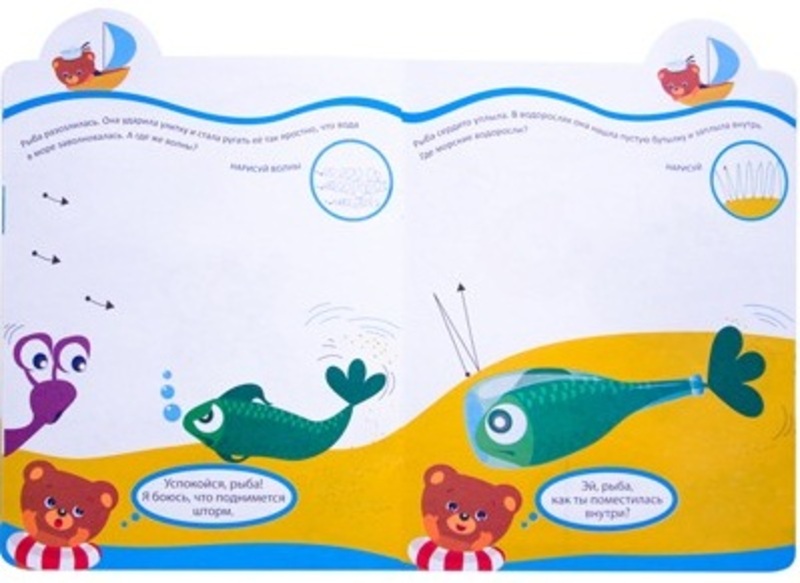 Серия: Я хочу нарисовать сказку Как подготовить руку к письму? В этом поможет интерактивная книжка «Веселые друзья» серии «Я хочу нарисовать сказку». Выполняя увлекательные задания, ваш ребенок поможет очаровательному медвежонку найти друзей в море. Рисуя длинные и короткие штрихи, круги и зигзаги, дорисовывая картинку, начатую художником, он станет активным участником сказки. Чтобы малыш не запутался, на каждой странице его ждет подсказка. Занятия по книгам серии «Я хочу нарисовать сказку» способствуют развитию мелкой моторики, фантазии и воображения, тренировке памяти. |