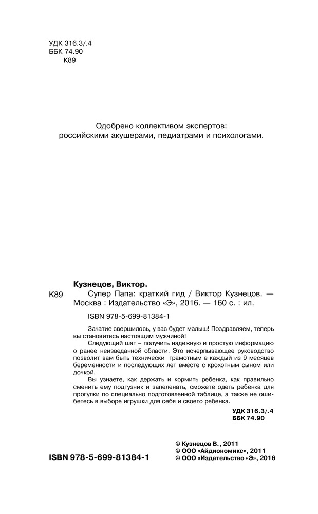 💳 Оплатить за товар можно при получении 🇰🇿 Есть бесплатная доставка по Казахстану 🎁 Копите бонусы с каждой покупки Серия: Я - папа Перед вами единственная книга для мужчин о том, как быть счастливым с будущей мамой и крохотным сыном или дочкой. |