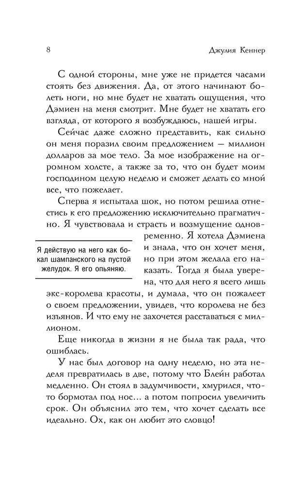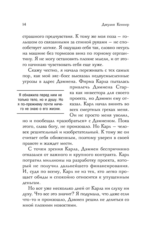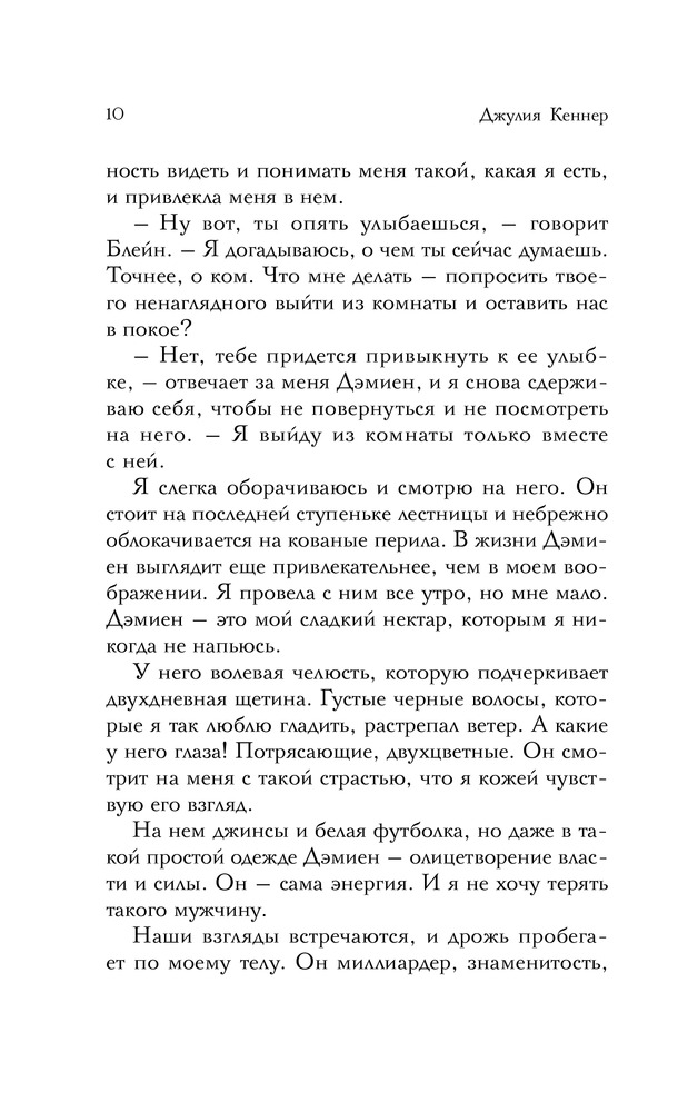 Джулия Кеннер известный американский автор любовных романов, юрист по образованию. Первую книгу Джулия написала в 2000 году, и с тех пор постоянно радует читателей новинками. Обладатель званий USA Today bestselling author и Waldenbooks bestselling author. Является финалистом RITA (американская премия для романистов) и победителем Romantic Times' Reviewer's Choice Award for Best Contemporary Paranormal. В 2004 году, оставив юридическую практику, писательница полностью посвятила себя написанию... |
