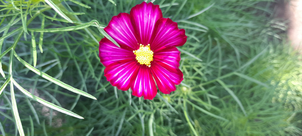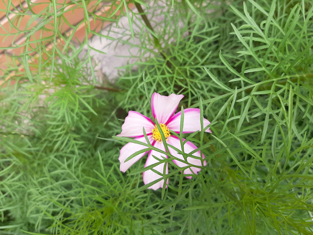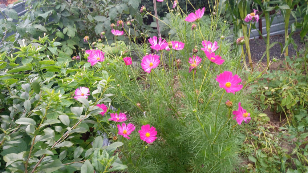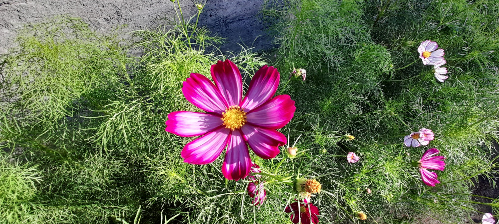 Цветы моего детства. Роскошное, однолетнее растение из семейства Астровые, высотой до 80 см. Пышный куст с ажурными листьями покрывают белые цветки, диаметром 10 см, с эффектной карминно-красной каймой по краю лепестков. Цветет обильно с июля до заморозков. Все точно, как написано, садила по краям клубники, на зиму не стала убирать, оставила для снегозадержания, с чем она прекрасно справилась.