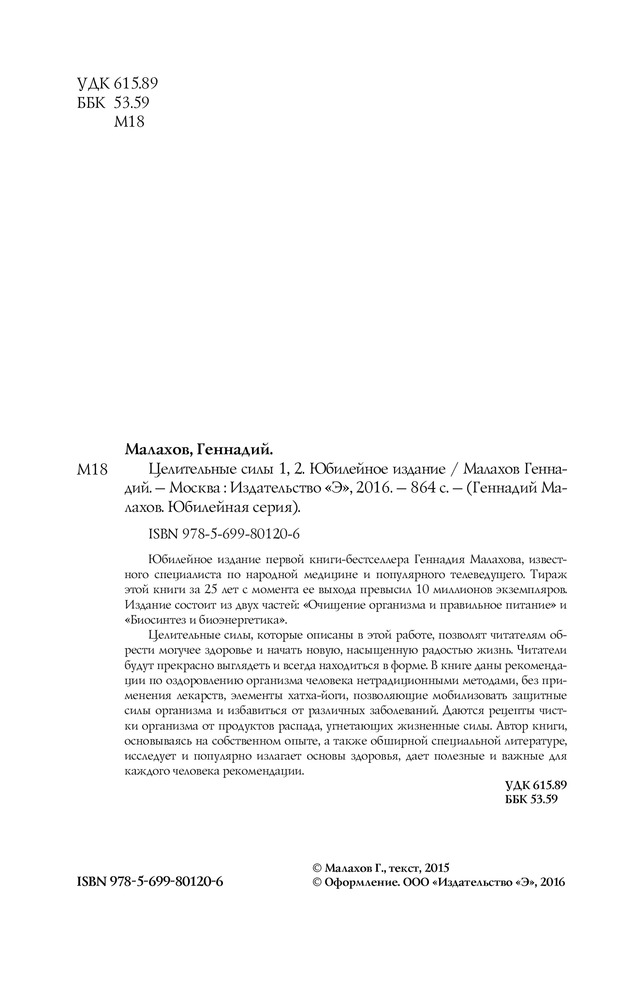 Целительные силы 1, 2. Юбилейное изданиеВ данный момент этот товар отсутствует в продаже. Возможно, у нас найдется аналогичный или похожий товар здесь. Серия: Геннадий Малахов. Юбилейная серия Юбилейное издание первой   |