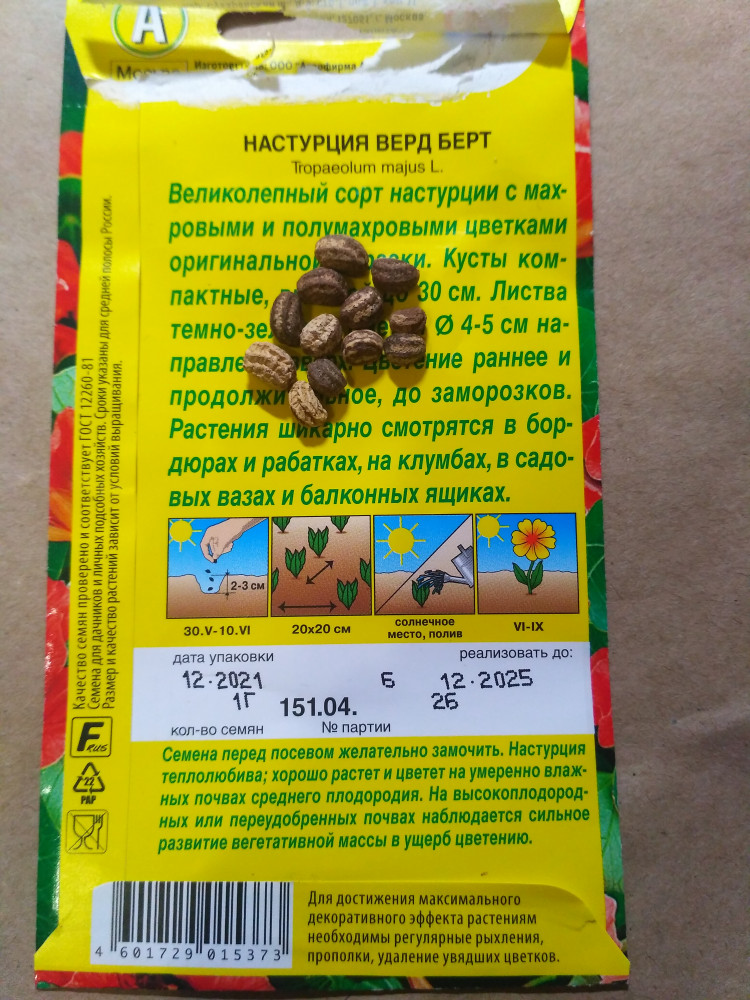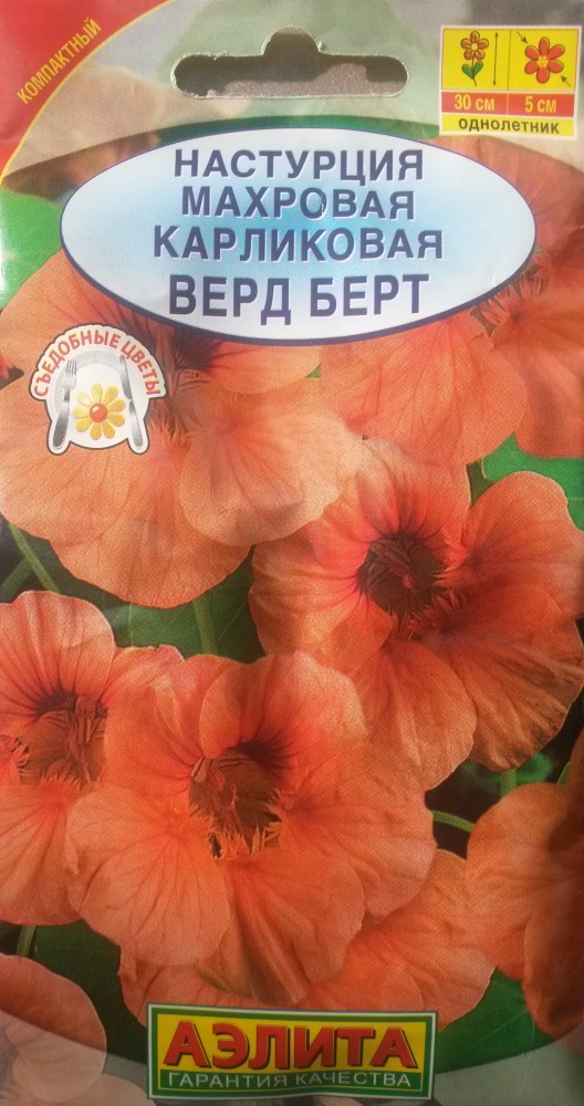 Аэлита Семена. Настурция карликовая «Верд Берт», 1 гбыстрая всхожесть быстрый рост красивые цветы срок годности