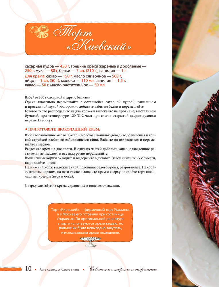 Советские торты и пирожныеАлександр Анатольевич Селезнев В данный момент этот товар отсутствует в продаже. Возможно, у нас найдется аналогичный или похожий товар здесь. Серия: Выбор кулинарной редакции Вспомните, как вы ждали праздника, потому что в конце застолья обязательно будет торт! Тогда мы не знали, что такое чизкейки и птифуры, но зато обожали «Птичье молоко», «Полет» и «Чародейку». Сейчас это время ушло в прошлое, в любом магазине выбор тортов поражает воображение, и уже не нужен особый повод, чтобы порадовать себя сладеньким. Но с появлением новых «заморских» тортов старые и любимые с детства |