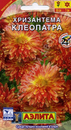 Аэлита Семена. Хризантема «Клеопатра», 0,02 гВ данный момент этот товар отсутствует в продаже. Возможно, у нас найдется аналогичный или похожий товар здесь. Серия: Многолетние цветы (Аэлита) Многолетняя хризантема с махровыми цветками Ø 6-7 см. Формирует густой компактный куст высотой около 50 см. Обильно цветет в позднелетние – осенние сроки, вплоть до устойчивых заморозков. Хорошо переносит пересадку с комом земли даже в полном цвету. Используется для украшения цветников и в контейнерной культуре. Зацветает через 5-6 месяцев после посева. |