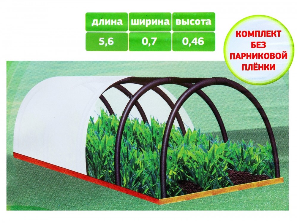 В комплект входят пластиковые трубки, специальные соединители и набор колышков для надёжной фиксации парника. В разобранном состоянии он занимает минимум места, его легко хранить и транспортировать.