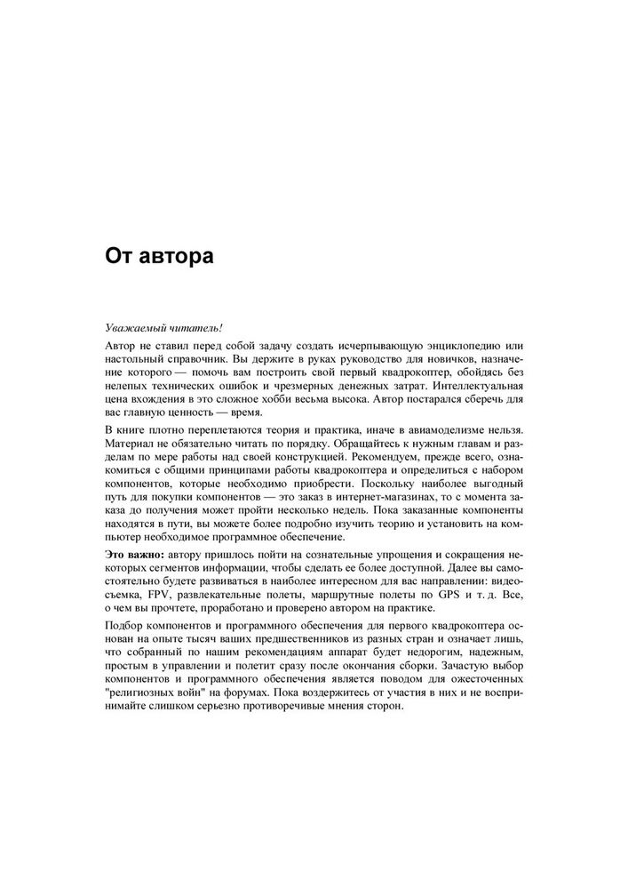 Отличная книга для любого кто мечтает "о небе", изучив данный материал, практически любой человек с "прямыми" руками сможет создать летающую модель коптера, о чем подробно описано в книге.