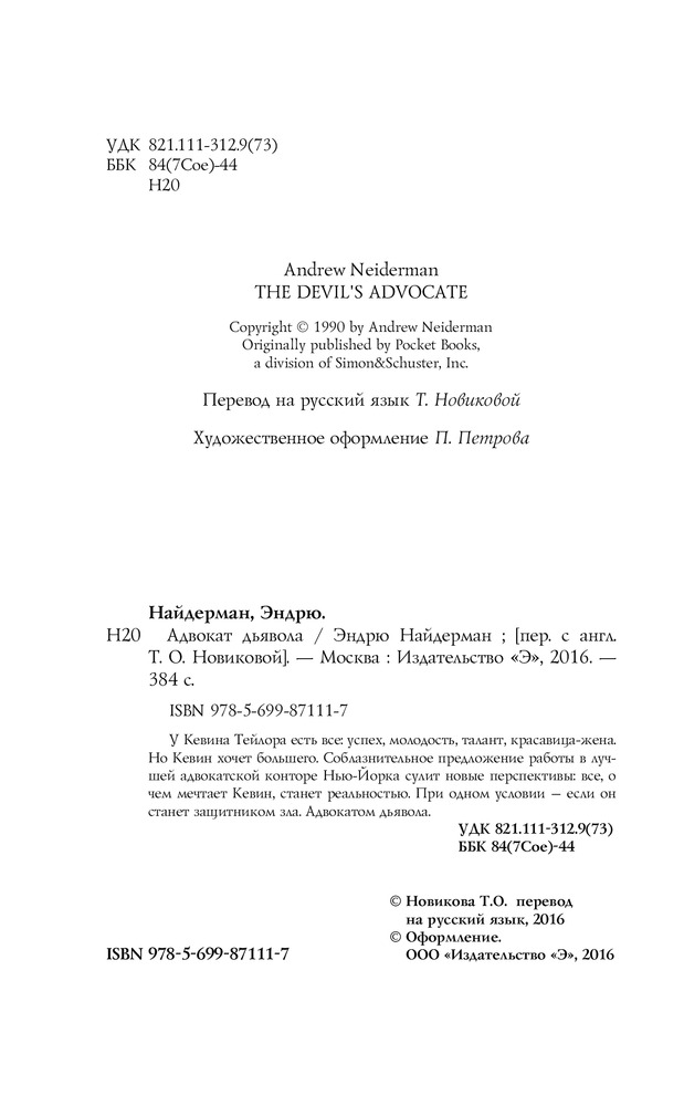 Адвокат дьяволаВ данный момент этот товар отсутствует в продаже. Возможно, у нас найдется аналогичный или похожий товар здесь. Серия: Девять с половиной недель У Кевина Тейлора есть все: успех, молодость, талант, |