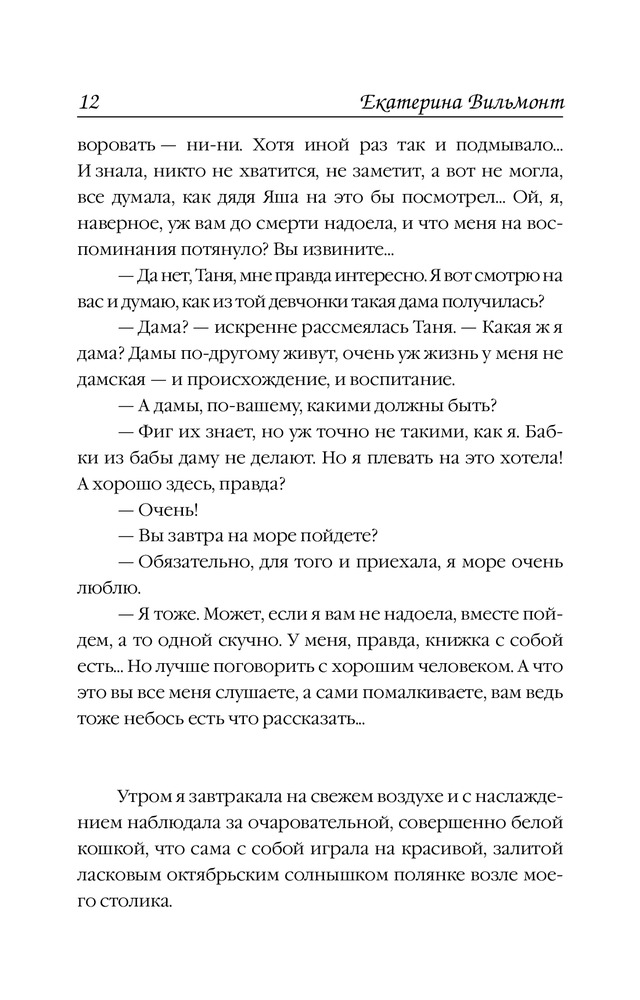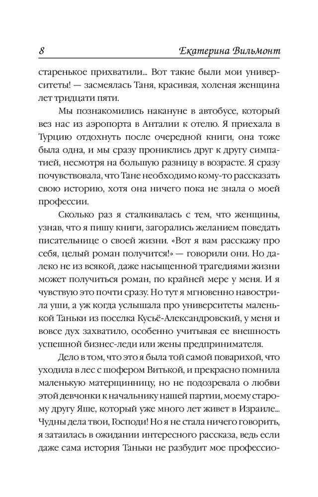 Серия: Про жизнь и про любовь. Екатерина Вильмонт Еще раз о любви. О том восхитительном, всегда новом, радостном чувстве, которое дарит нам порой судьба, — новый роман Екатерины Вильмонт. Она — студентка, он — маститый сценарист. Она юна, у нее впереди целая жизнь. А у него — годы за плечами, опостылевшая семья и душевный кризис. Что их связывает? Зачем нужны им такие сложные, запутанные отношения? Только любовь сможет дать ответ, только время все расставит по своим местам. |