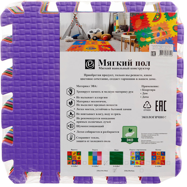 EVA — это экологически чистый высокоэффективный вспененный каучук. Нетоксичный гипоаллергенный материал совершенно безопасен для самых маленьких детей.