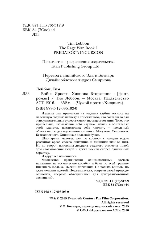 | Хищник. Вторжение    	Тим Леббон
