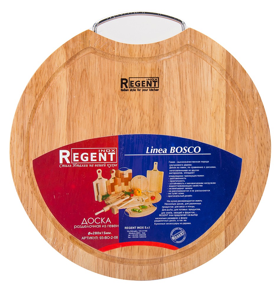 Regent Доска разделочная «Regent» круглая с металлической ручкой, 28 смВ данный момент этот товар отсутствует в продаже. Возможно, у нас найдется аналогичный или похожий товар здесь. Серия: Доски разделочные Круглая разделочная доска сделана из гевеи, которая не изменяет вкусовые качества и цвет пищи. Она имеет очень плотную светлую древесину кремовых и молочных оттенков, которая не только смотрится довольно интересно, но и не подвергается механическим повреждениям. Данный материал не боится перепадов температуры: доска не корябается и не расслаивается. Изделие удобно не только для нарезки продуктов, а также в качестве подставки под горячее. Содержать доску в чистоте очень легко, достаточно её помыть в теплой воде и вытереть полотенцем. |