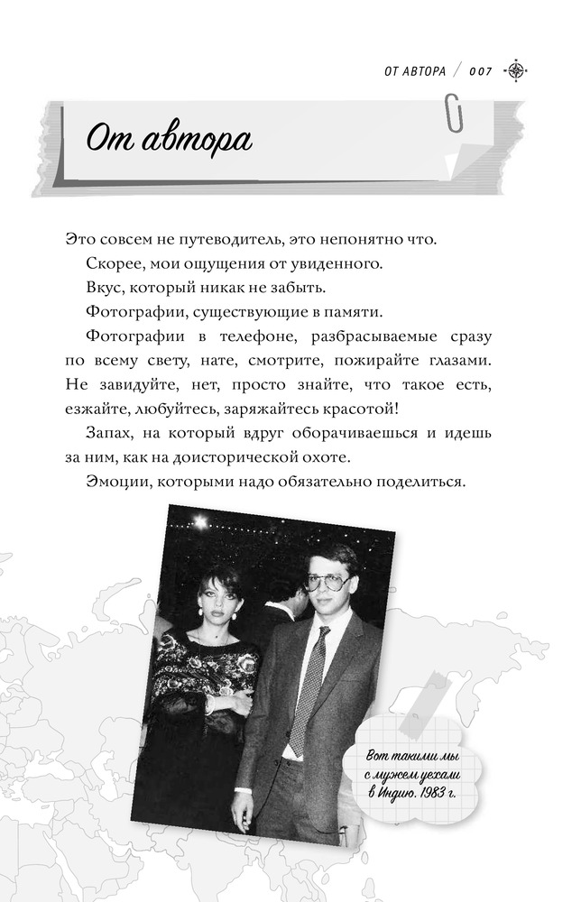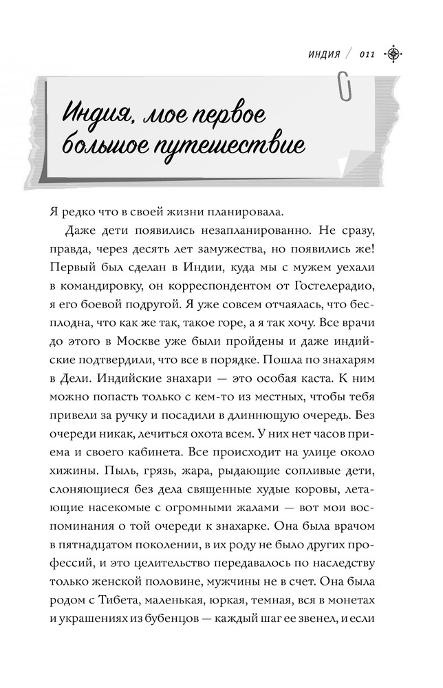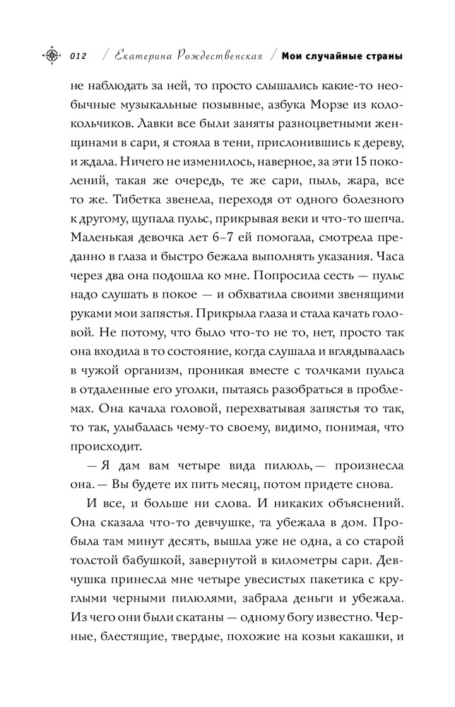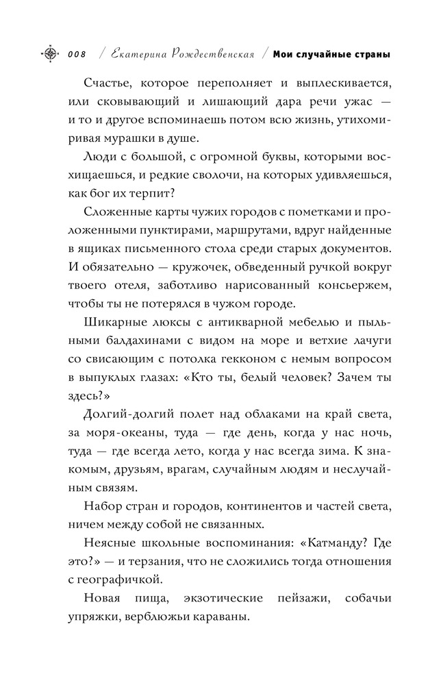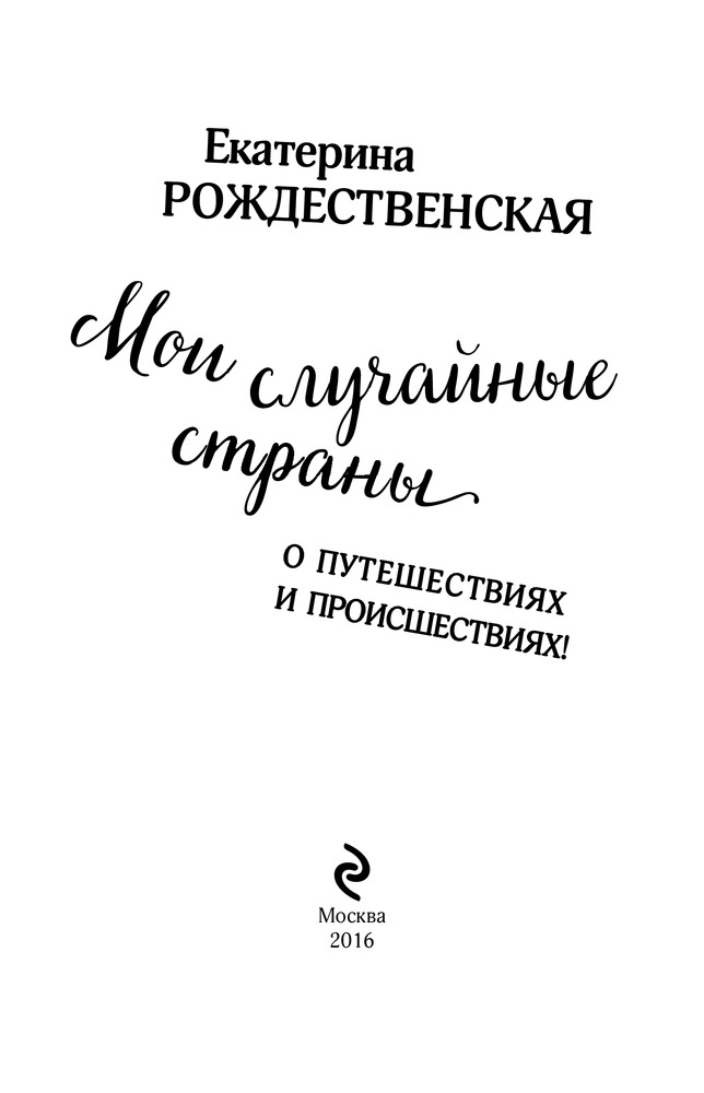 Мои случайные страны. О путешествиях и происшествиях!Екатерина Робертовна Рождественская В данный момент этот товар отсутствует в продаже. Возможно, у нас найдется аналогичный или похожий товар здесь. Серия: Книга о Роберте Рождественском и нашей семье Я три года прожила в Индии, год или чуть больше во Франции, два с половиной года в Испании, два года в Финляндии и еще много где. Выходит, что я полжизни пробыла вне дома, в поисках впечатлений, историй, фотографий, опыта, воздуха для моего только что родившегося ребенка, врачей для отца, общения с давно уехавшими друзьями, просто отдыха, просто леса, просто моря или гор. Я ездила, чтобы насмотреться на мир, накопить эмоций, наесться глазами красоты и обязательно поделиться всем этим с вами! Впереди, уверена, еще много случайных, ничем не связанных между собой — и со мной — стран! Поехали? |