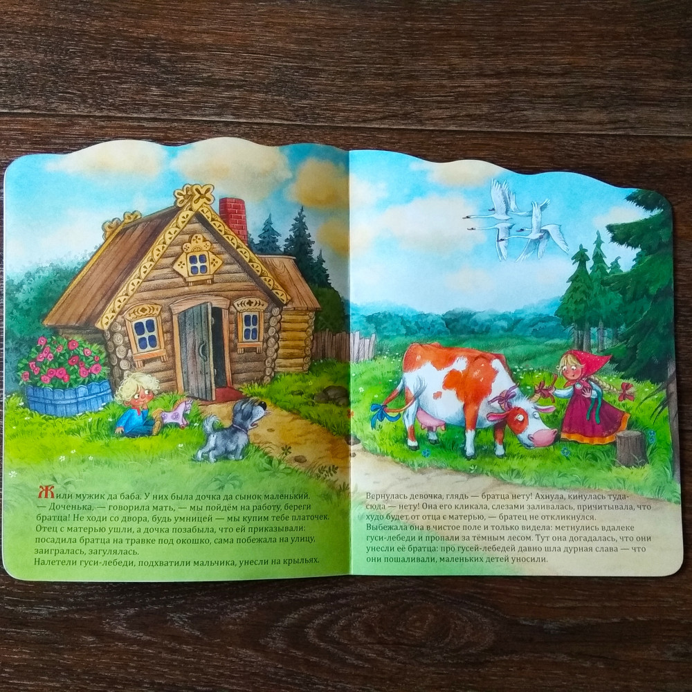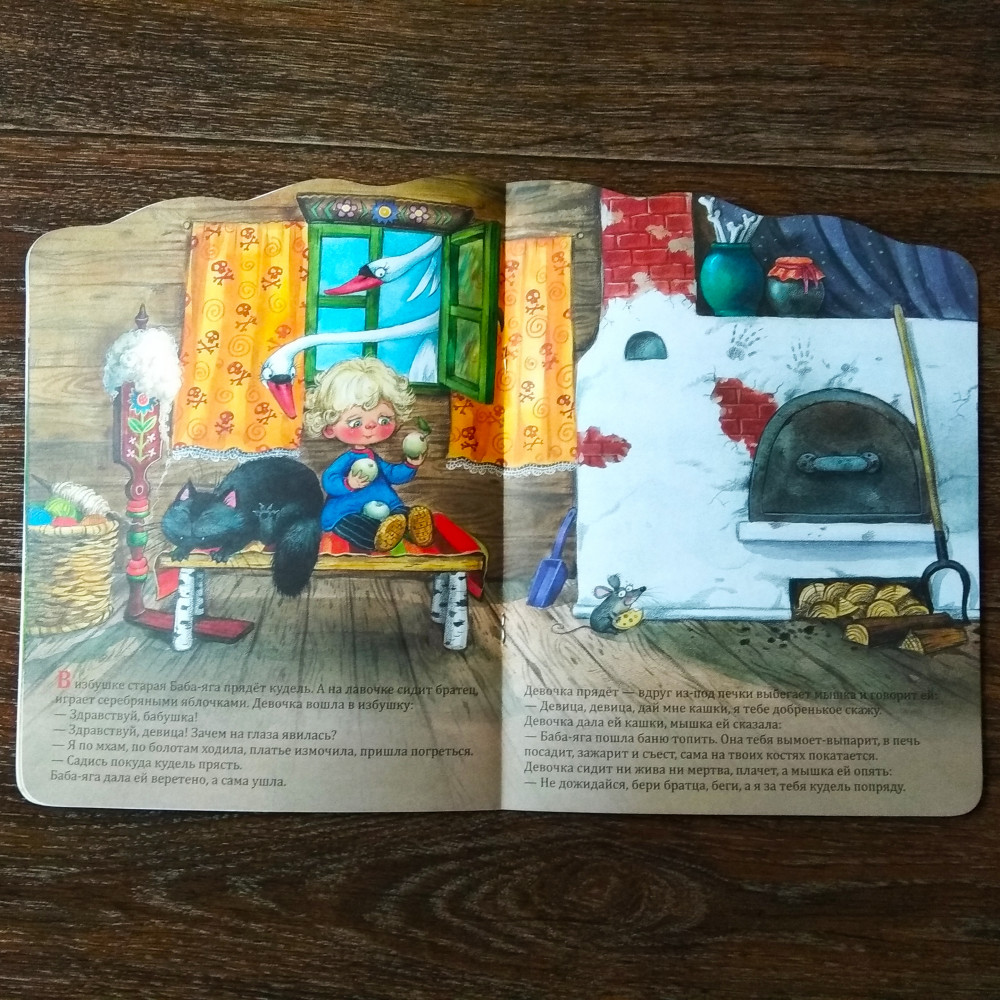 Книга большая, обложка - глянцевый картон, листы плотные. Иллюстрации красочные, но "на любителя". Лично мне такой стиль рисования не очень понравился. Так как приобрела книгу с хорошей скидкой, то довольна. А если приобретать без скидки, то за тонкую книгу дороговато. И содержание хоть и в классической обработке Толстого, но проигрывает советскому одноименному мультфильму.