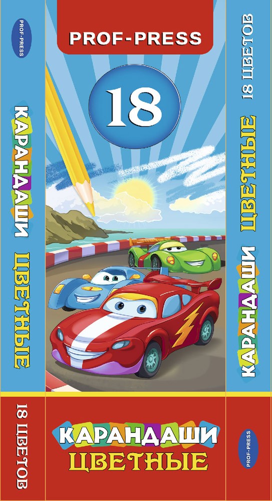 Карандаши «Три машинки», 18 цветов, шестигранный корпус-25% +10