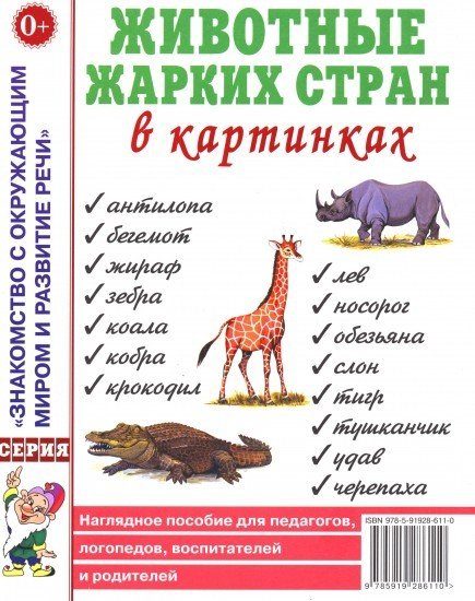 Животные жарких стран в картинках. Наглядное пособие для педагогов, логопедов, воспитателей и родителейВ данный момент этот товар отсутствует в продаже. Возможно, у нас найдется аналогичный или похожий товар здесь. Серия: Знакомство с окружающим миром и развитие речи Потерта передняя обложка |
