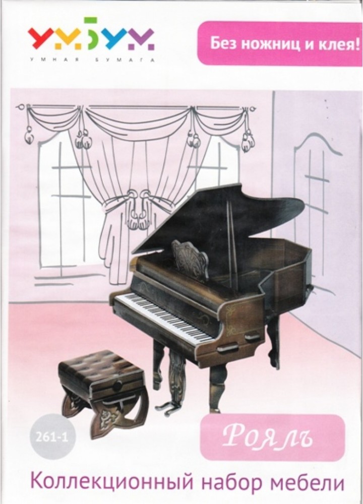 Серия: Коллекционный набор мебели Выпускается в двух вариантах - в светлом и темном исполнении. Вне зависимости от исполнения, рояль очень привлекателен внешне, крышка резонатора в открытом положении удерживается стойкой, которую можно повернуть и закрыть крышку. Маленькая крышка над клавиатурой и резная съемная подставка для нот добавляют нашему роялю сходства с настоящим музыкальным инструментом. В набор входит банкетка для пианиста. Детали сборной игрушки соединяются друг с другом без клея. Набор отличается несложной сборкой. Его можно рекомендовать детям, которые имеют небольшой опыт сборки наших игрушек. Рояль можно использовать для игры. Детали выполнены из прочного картона, но при неосторожной игре или сильном надавливании на крышку открытого рояля тонкая стойка крышки может сломаться. |
