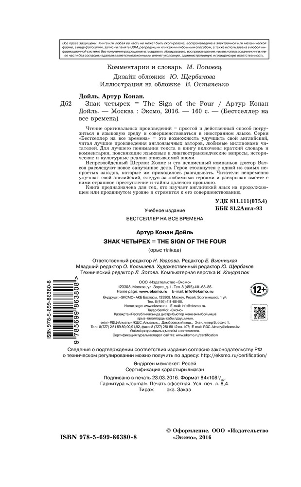 Чтение оригинальных произведений — простой и действенный способ погрузиться в языковую среду и совершенствоваться в иностранном языке. Серия «Бестселлер на все времена» — это возможность улучшить свой английский, читая лучшие произведения англоязычных авторов, любимые миллионами читателей. Для лучшего понимания текста в книгу включены краткий словарь и комментарии, поясняющие языковые и лингвострановедческие вопросы, исторические и культурные реалии описываемой эпохи.