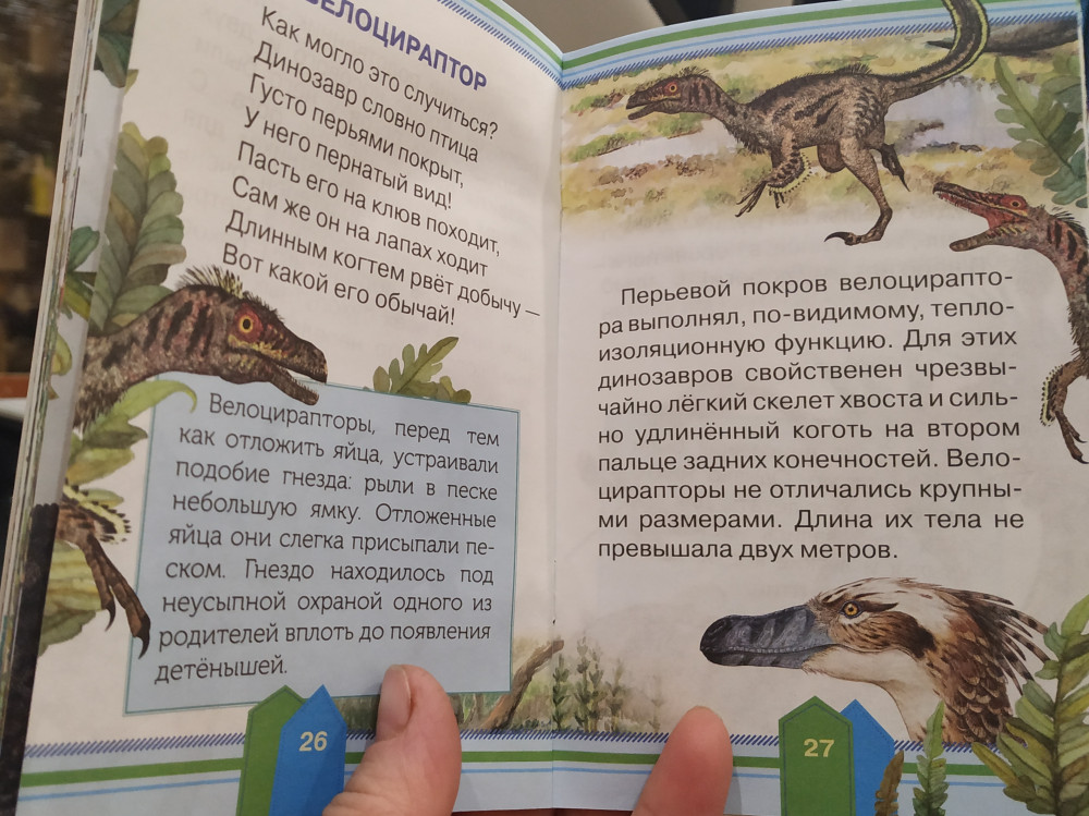 Размер книги маленький, но содержит полезной информации про каждый вид динозавра больше, чем в книгах большего размера