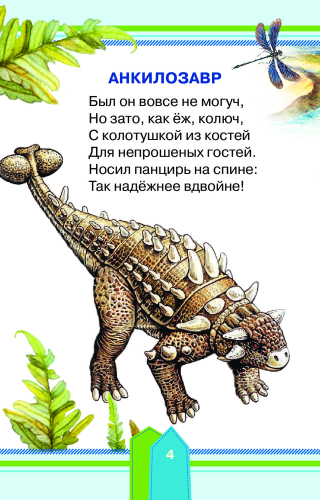 Несмотря на свой маленький размер, книжка заинтересовала ребёнка с первого взгляда! Содержание ёмкое. К каждому динозавру есть стихотворение, описание и картинка. Книга напечатана ярко с плотными страницами. Приятно и удобно держать в руках. Ребёнок 5 лет по стихотворению угадывает о каком динозавре идёт речь. Тем, кто увлекается динозаврами, книга очень понравится!