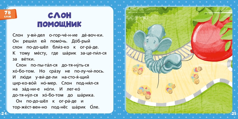 Отличная книга для ребенка, который уже знает буквы, очень удобно для первого чтения.
