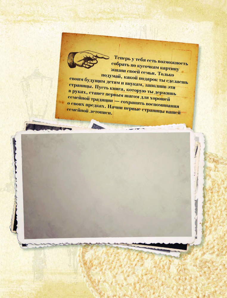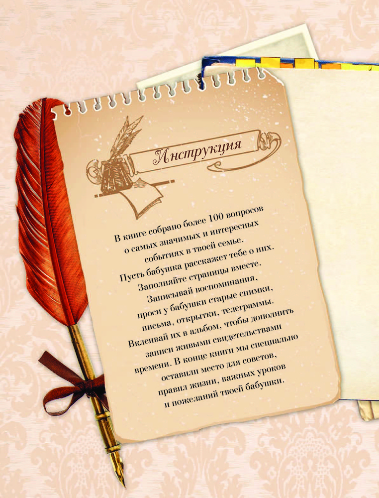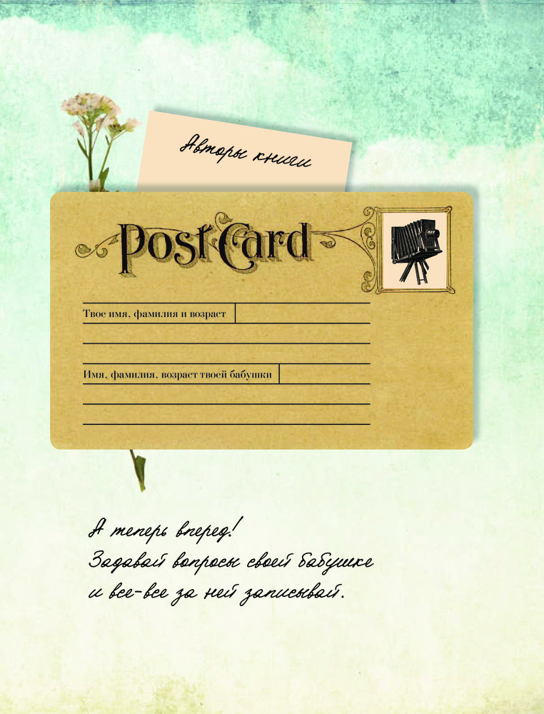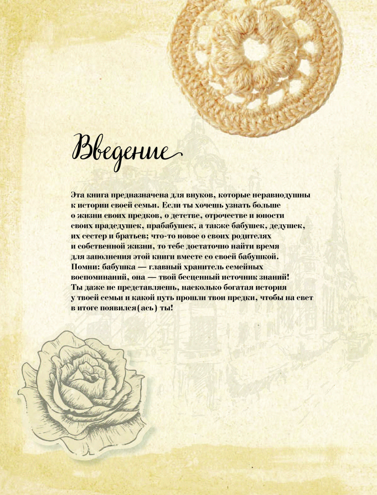 История нашей семьи. Книга, которую мы напишем вместе с бабушкойВ данный момент этот товар отсутствует в продаже. Возможно, у нас найдется аналогичный или похожий товар здесь. Серия: История нашей семьи Семья — самое ценное, что есть у любого человека, а воспоминания — единственное, что остается с нами навсегда. Эта книга создана для того, чтобы помочь сохранить историю твоей семьи. Найди время для встречи со своей бабушкой, чтобы записать самые важные семейные истории. В этом альбоме более 100 вопросов, которые ты сможешь задать своей бабушке, а также специально отведенные место для старых и новых фотокарточек, писем, телеграмм и других свидетельств времени о твоей семье. |