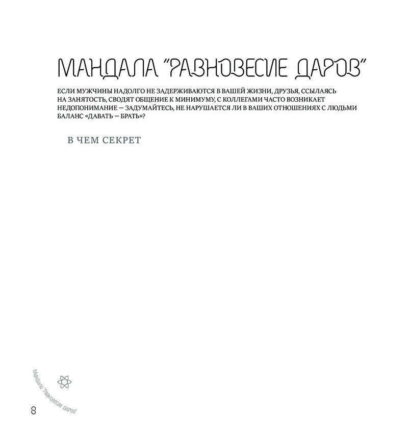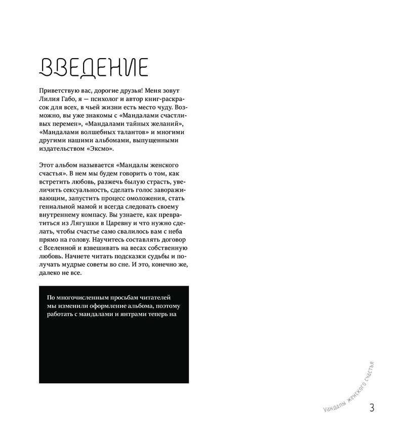 Раскраска. Мандалы женского счастьяВ данный момент этот товар отсутствует в продаже. Возможно, у нас найдется аналогичный или похожий товар здесь. Серия: Мандалы Впервые мандалы, по просьбам многочисленных читателей, приобретают ОБЪЕМ. Теперь перед вами двухсторонние рисунки использовать которые очень удобно. В своем новом альбоме-практикуме профессиональный психолог и автор бестселлеров Лилия Габо говорит о том, как встретить любовь, разжечь былую страсть, увеличить сексуальность, сделать голос завораживающим, запустить процесс омоложения, стать гениальной мамой и как всегда следовать своему внутреннему компасу. Вы узнаете, как превратиться из Лягушки в Царевну, и что нужно сделать, чтобы счастье само свалилось вам с неба прямо на голову. Научитесь составлять договор с Вселенной и взвешивать на весах собственную любовь. Начнете читать подсказки Судьбы и получать мудрые советы во сне. И это, конечно же еще не все. |